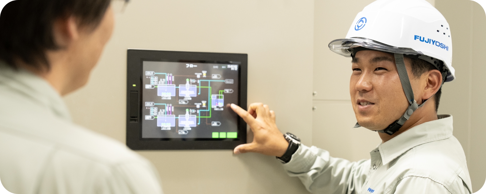 「求人サイトでいろいろな仕事を見て、業務内容も調べたうえで、今までやったことがない仕事に挑戦したみたい! と思って飛び込みました。排水処理施設のメンテナンスのようなインフラを支える仕事は安定しているという考えもありました」と、藤吉工業を志望した理由を語ってくれました。